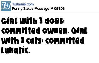 X says Girl with 3 dogs: committed owner. Girl with 3 cats: committed lunatic.