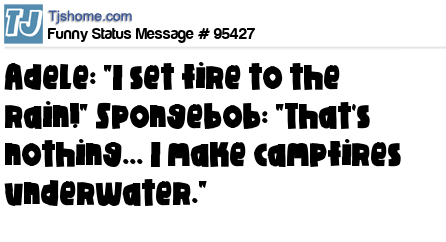 - # 98707 Adele might set fire to rain... But SpongeBob can make a campfire under water.