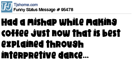 X Had a mishap while making coffee just now that is best explained through interpretive dance...