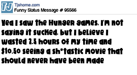X is Yea I saw the Hunger games, I'm not saying it sucked, but I believe I wasted 2.5 hours of my time and $10.50 seeing a sh*tastic movie that should never have been made