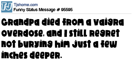 - # 95362 Our Grandpa died of a V!agra overdose,,, and to this day, we still regret not burying him just a few inches deeper...