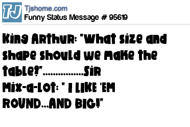 X King Arthur: "What size and shape should we make the table?"................Sir Mix-a-lot: " I LIKE 'EM ROUND...AND BIG!"