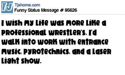 X I wish my life was more like a professional wrestler's. I'd walk into work with entrance music, pyrotechnics, and a laser light show.