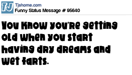 X says You know you're getting old when you start having dry dreams and wet farts.