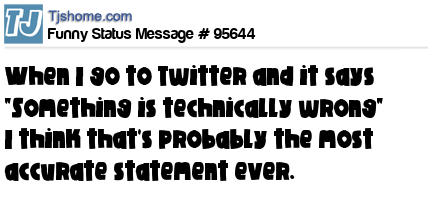 X When I go to Twitter and it says "Something is technically wrong" I think that's probably the most accurate statement ever.