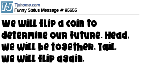 X is We will flip a coin to determine our future. Head, we will be together. Tail, we will flip again.