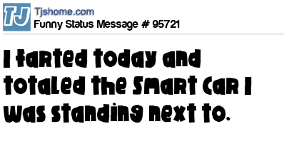 X I farted today and totaled the Smart Car I was standing next to.