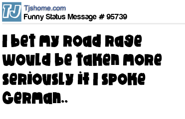 X is I bet my road rage would be taken more seriously if I spoke German..