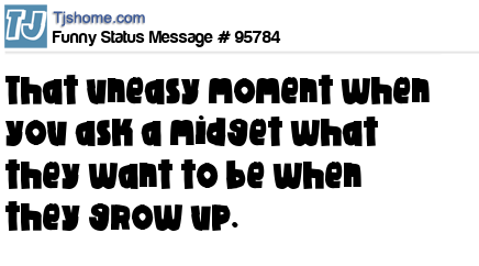 X says That uneasy moment when you ask a midget what they want to be when they grow up.