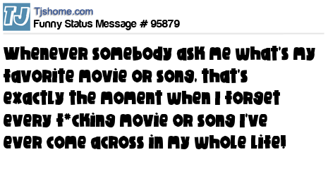 X Whenever somebody ask me what's my favorite movie or song, that's exactly the moment when I forget every f*cking movie or song I've ever come across in my whole life!