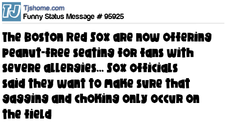 X  The Boston Red Sox are now offering peanut-free seating for fans with severe allergies... Sox officials said they want to make sure that gagging and choking only occur on the field