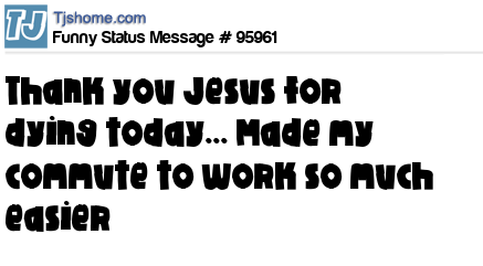 X is Thank you Jesus for dying today... Made my commute to work so much easier