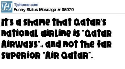 X  It's a shame that Qatar's national airline is "Qatar Airways",, and not the far superior "Air Qatar".