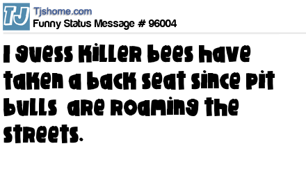 X is I guess killer bees have taken a back seat since pit bulls are roaming the streets.