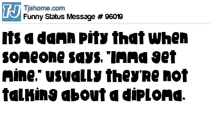 X says Its a damn pity that when someone says, "Imma get mine," usually they're not talking about a diploma.