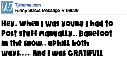 X Hey,, When I was young I had to Post stuff manually... Barefoot in the snow,,, uphill both ways....... And I was GRATEFULL