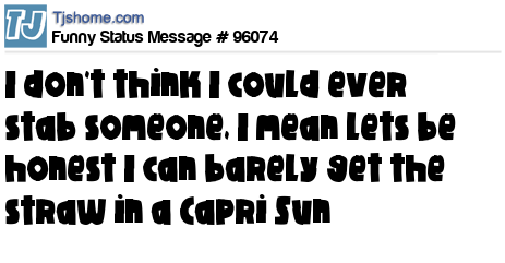 - # 152922 I don't think I could ever stab someone... I mean lets be honest. I can barely get the straw through a Capri Sun