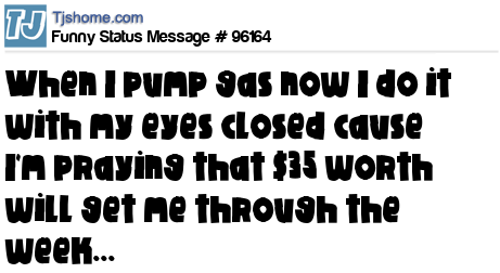 X  When I pump gas now I do it with my eyes closed cause I'm praying that $35 worth will get me through the week...