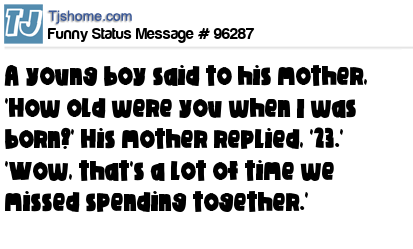 X is A young boy said to his mother, 'How old were you when I was born?' His mother replied, '23.' 'Wow, that's a lot of time we missed spending together.'