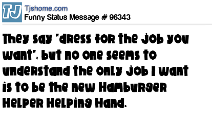 X says They say "dress for the job you want", but no one seems to understand the only job I want is to be the new Hamburger Helper Helping Hand.
