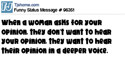 - # 95271 When women ask for your opinion what they really want to hear is their opinion, but in a deeper voice.