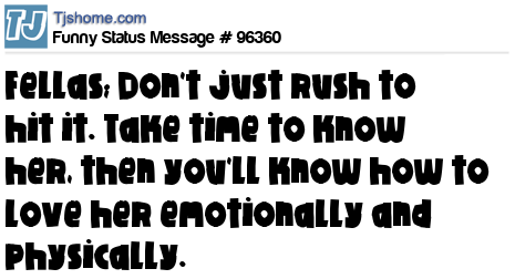 X says Fellas; Don't just rush to hit it. Take time to know her, then you'll know how to love her emotionally and physically.