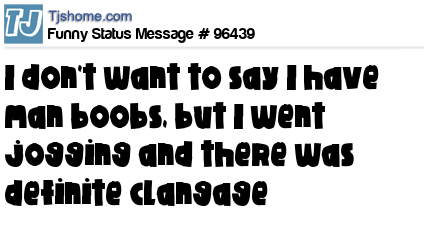 X is I don't want to say I have man boobs, but I went jogging and there was definite clangage