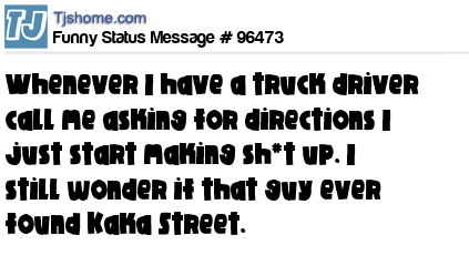 X  Whenever I have a truck driver call me asking for directions I just start making sh*t up. I still wonder if that guy ever found Kaka Street.