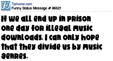 - # 88505 If someday we all go to prison for downloading music, I just hope they split us up by the music genre.