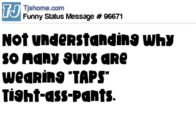X is not understanding why so many guys are wearing "TAPS" Tight-ass-pants.