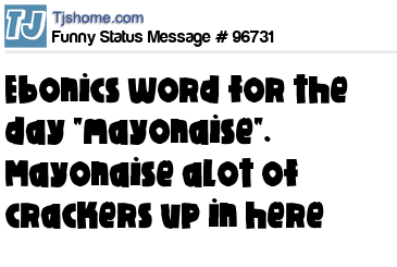 X Ebonics word for the day "mayonaise". Mayonaise alot of crackers up in here