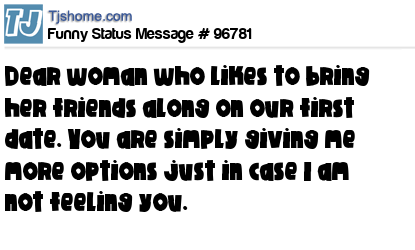 X says Dear woman who likes to bring her friends along on our first date. You are simply giving me more options just in case I am not feeling you.