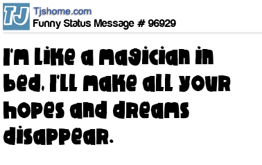 - # 197541 I'm a magician. An overweight magician. My most famous trick is putting on a Speedo and having it disappear instantly.