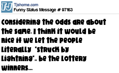 X  Considering the odds are about the same, I think it would be nice if we let the people literally  "struck by lightning",, be the lottery winners...
