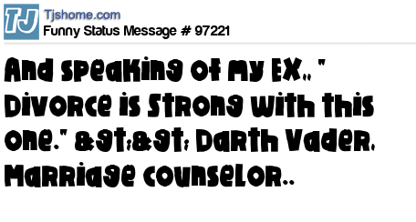 X is And speaking of my EX,, " Divorce is Strong with this one." >> Darth Vader, Marriage counselor..
