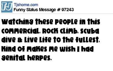 - # 170526 Wow, watching the People in the Commercial Rock Climb, Scuba Dive & Live Life to the Fullest ............... makes me Wish I had Genital Herpes too.