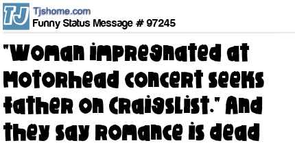 X "Woman impregnated at Motorhead concert seeks father on Craigslist." And they say romance is dead