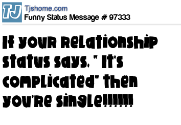 - # 16061 I think if your relationship status says, "It's complicated" that you should stop kidding yourself and change it to "Single" or petition for a new status called "I am bootycall."