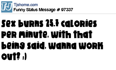 X is Sex burns 25.7 calories per minute, with that being said, wanna work out? ;)