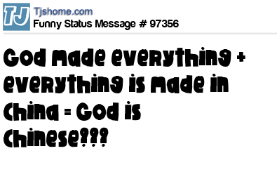 X God made everything + everything is made in China = God is Chinese???
