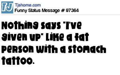 X is Nothing says "I've given up" like a fat person with a stomach tattoo.