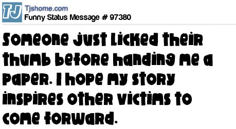 - # 166373 Some @$$ hole licked their thumb before handing me a paper. I hope my story inspires other victims to come forward.