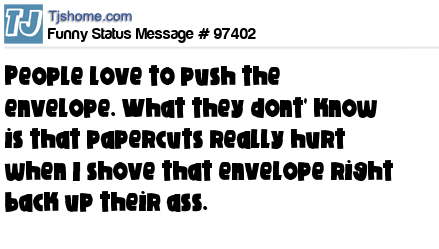 X People love to push the envelope. What they dont' know is that papercuts really hurt when I shove that envelope right back up their ass.