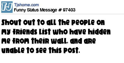 X Shout out to all the people on my friends list who have hidden me from their wall, and are unable to see this post.