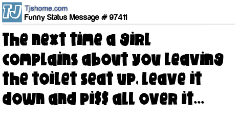 X says The next time a girl complains about you leaving the toilet seat up, leave it down and pi$$ all over it...