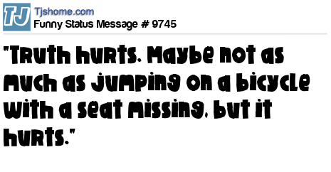 - # 69670 Truth hurts. Maybe not as much as jumping on a bicycle with a seat missing, but it hurts