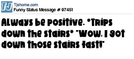 X is Always be positive. *Trips down the stairs* "Wow, I got down those stairs fast!"