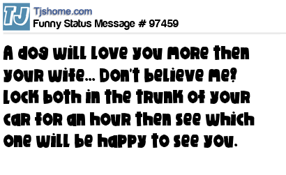 - # 92748 Dogs are truly mans best friend. If you dont believe me, lock your wife/girlfriend and dog in the trunk of your car. After a few hours go back and open it. Which of them is glad to see you?