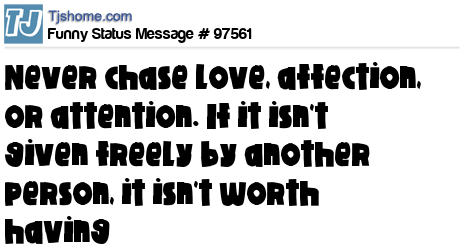 X is Never chase love, affection, or attention. If it isn't given freely by another person, it isn't worth having