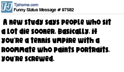 X says A new study says people who sit a lot die sooner. Basically, if you're a tennis umpire with a roommate who paints portraits, you're screwed.